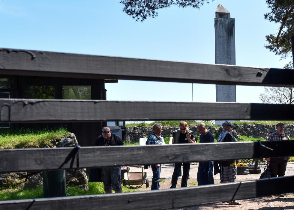 Taustalla vuonna 1940 Henrik Bruunin suunnittelema Ruotsinsalmen toisen meritaistelun 1790 muistomerkki. Kuva: Hannu Lehtinen