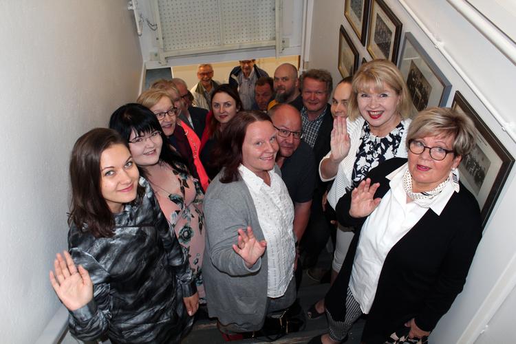 Marjo Valtaselle (kuvassa keskellä) toisten yrittäjien tuki ja hyvä verkosto ovat tärkeitä. Kuopion käsityö- ja tehdasseuruus ry:n Kilta-talon avajaiset kokosi yrittäjiä yhteiseen illanviettoon kesäkuussa 2019. Kuva: Anna-Liisa Järvenpää.