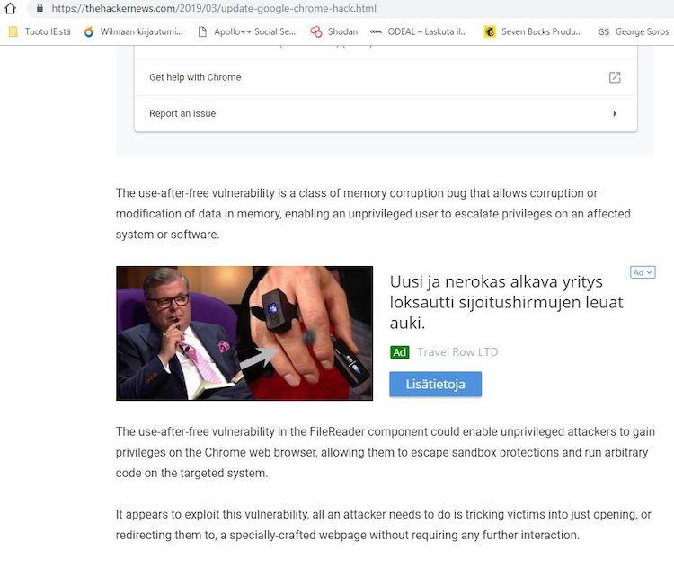 – Tämä tuli vielä eilen joka paikassa vastaan, Suomessa törmäsin siihen ainakin Savon Sanomien verkkosivuilla. Käytännössä huijausmainos tulee vastaan kaikkialla, missä muitakin Google Ads -mainoksia.