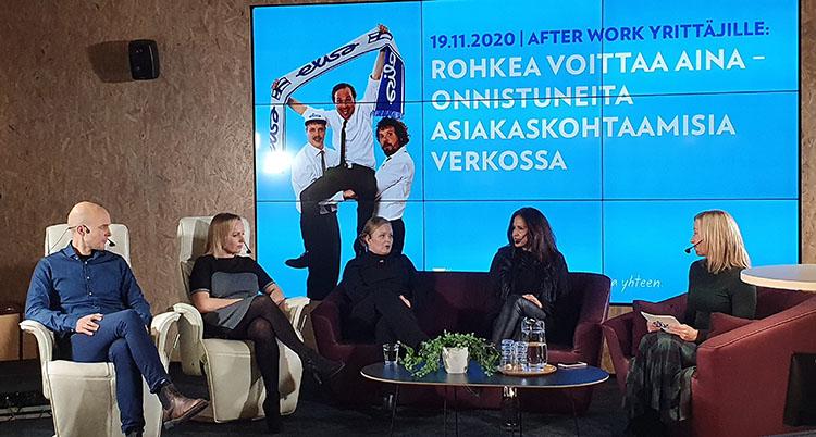 ”Jos nettisivuilla ei kukaan käy, niin ei ne niillä paljon tee”, yrittäjä Krista Huhtala-Jenks sanoo. Kauneusalalla toimivaa Maj Worksia luotsaava Huhtala-Jenks keskusteli Elisan järjestämässä After Work -virtuaalitilaisuudessa verkon kautta tapahtuvasta asiakashankinnasta Giosgn toimitusjohtaja Ville Rissasen ja yrityskonsultti Sanna Jylängin kanssa.
