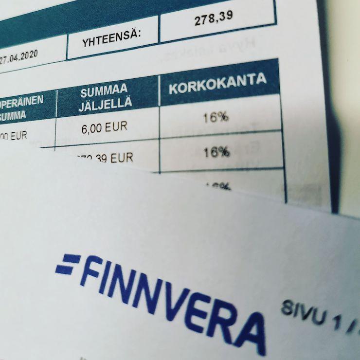 – Minulla on käynyt aikaisemminkin niin, että Finnveran järjestelmästä lähtenyt sähköinen lasku ei ole tullut meille. Ei laskun silti pitäisi suoraan mennä perintään 16 prosentin korolla, hän moittii.