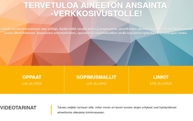 Aineetonansainta.fi-sivustolta löytyy tietoa patenteista ja tekijänoikeuksista sekä sopimusmalleja.