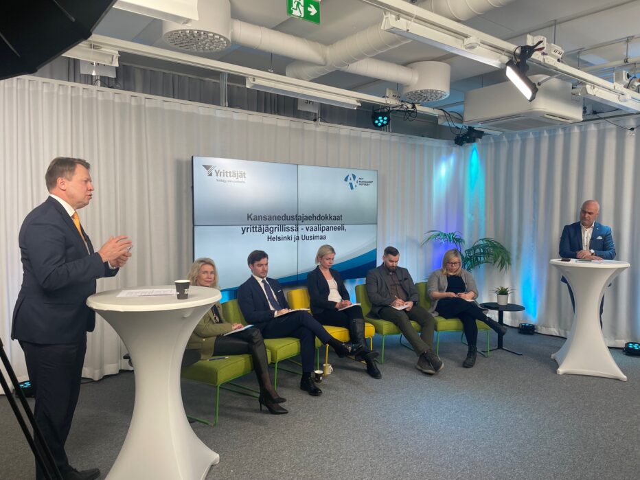 Viiden suurimman eduskuntapuolueen kansanedustajaehdokkaat kohtasivat Yrittäjägrilli-vaalikeskustelussa.