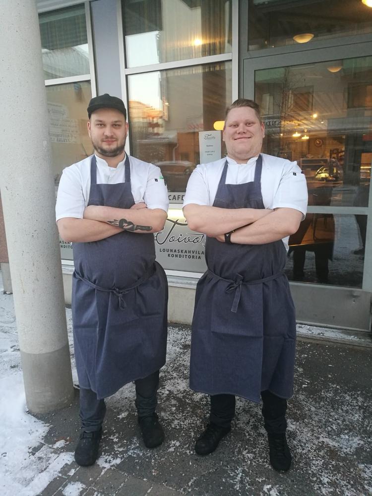 Cafe Toivo ja sen yrittäjät:Cafe Toivo – Lounasravintola ja konditoria Rovaniemen keskustassa – Käyntiosoite: Rovakatu 14, 96100 Rovaniemi – Avoinna ma-pe: 7.30-17. La: 10-14. Su: Suljettu – Lounas: maanantaista perjantaihin klo 11-14 – cafetoivo@cafetoivo.fi / 040 176 9969 – cafetoivo.fi Yrittäjät: Aarne Pekkala, 28 – Asunut lapsuutensa Rovaniemellä – Valmistunut Lapin ammattiopistosta ravintolakokiksi vuonna 2008 – Työskennellyt valmistumisen jälkeen ravintoloissa ympäri Lappia – Muutti vuonna 2012 ensin Norjaan ja sieltä Helsinkiin töihin – Työskenteli Helsingissä huippuravintoloissa, viimeisimpinä ravintola Savoy Mika Takkinen, 28 – Asunut lapsuutensa Rovaniemellä – Valmistunut Lapin ammattiopistosta ravintolakokiksi vuonna 2008 – Valmistumisen jälkeen työskennellyt ravintoloissa ympäri Suomen – Ollut avaamassa ravintoloita mm. Helsinkiin, Olokselle ja Leville – Työskennellyt viimeiset viisi kesää keittiömestarina ravintola Makasiinissa Hangossa – Oli ennen yrittäjäksi ryhtymistään töissä Levin igluilla – Asuu nyt Rovaniemellä tyttöystävän ja koiran kanssa |