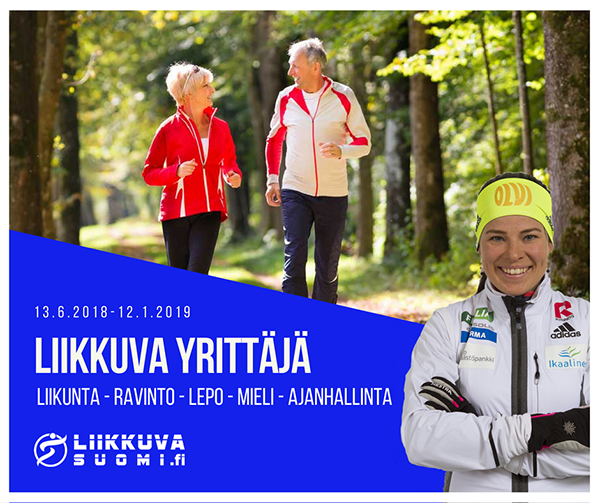 Liikkuva Suomi järjestää yrittäjille kesäkuussa Liikkuva Yrittäjä -hyvinvoinnin ohjelman, jossa sinua autetaan tekemään pitkäkestoisia valintoja niin liikunnan-, ravinnon-, levon- ja mielen hyvinvoinnin suhteen. Mukana valmennustiimissä on myös hiihtäjä Krista Pärmäkoski.