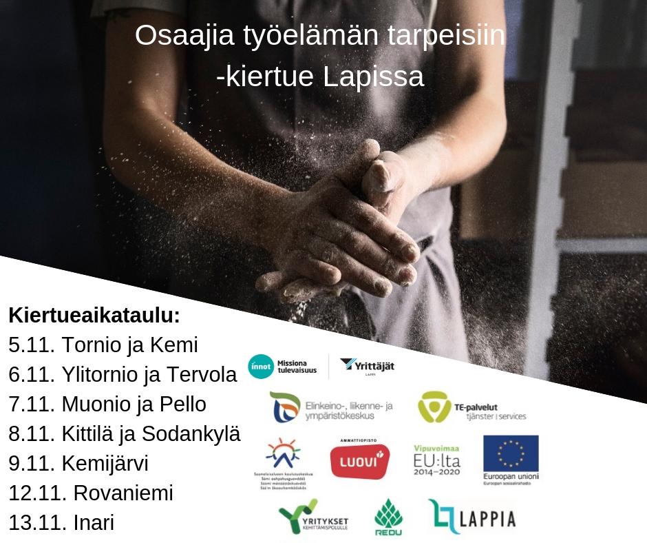 Työmaailma on suurten muutosten kintaalla. Monilla työnantajilla on kova pula pätevistä työntekijöistä ja moni työnhakija ei tahdo löytää omaa osaamistaan ja intressejään vastaavaa työtä. Mutta miten oikea työntekijä ja työnantaja löytäisivät toisensa? Jos aihe on ajankohtainen ja agendalla, kannattaa poiketa Osaamista työelämän tarpeisiin -kiertueella kuulemassa lisää.