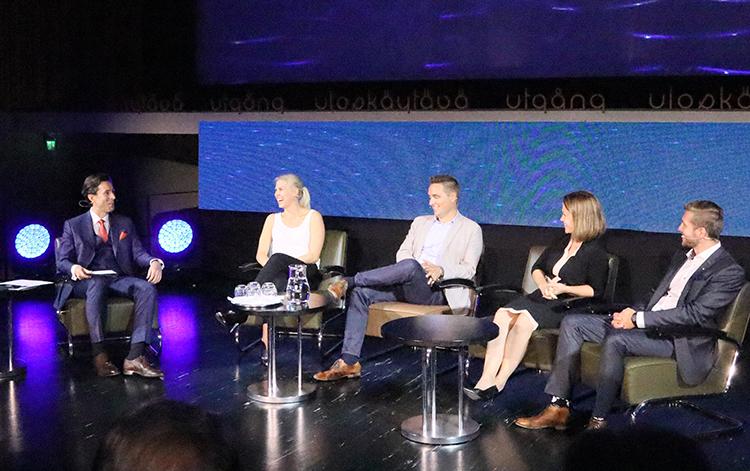 Yrittäjyyden ja pienten lasten vanhemmuudesta keskustelivat paneelissa kauppiaat Eleonoora Karlsson-Seppänen ja Mikko Seppänen K-Market Puulantorista Kangasniemeltä, toimitusjohtaja Petri Hollmén Lyyti Oy:stä Turusta ja toimitusjohtaja Noora Fagerström Smoothie Heavenista Helsingistä.