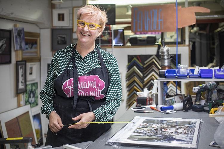 – Annoin sohvalta käsin ohjeita minua auttamaan tulleille ystävilleni, sukulaisilleni ja entiselle harjoittelijalleni. Hän tuli vakituisesta työstään ja kolmesta lapsestaan huolimatta aina iltaisin ja viikonloppuisin hommiin. Hän olikin ainut, joka osasi tehdä päätyötäni eli kehystää, Halmeniemi kertoo.