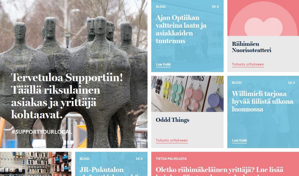 Supportti verkkopalvelun on riihimäkeläisen digitoimisto Digital Lighthousen käsialaa. Kuvakaappaus palvelun etusivulta.