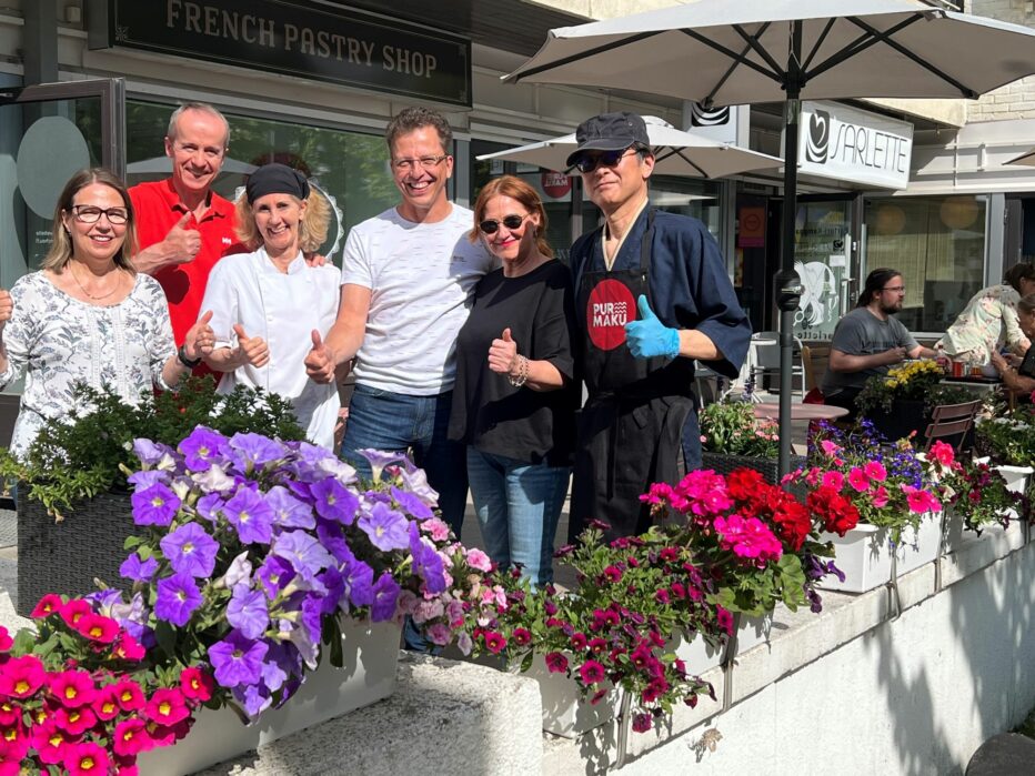 Kukkaprojektia voi hyvällä syyllä kutsua kansainväliseksi hankkeeksi: mukaan lähtivät japanilaisperheen pyörittämä ruokaravintola Pure Maku, ranskalaisperheen pitämä leivonnaiskauppa Mon Chou, parturi-kampaamo Sarlette sekä sisustusliike Decora. Kukat tilattiin Puutarha KukKaisasta yrittäjä Kaisa Puuruselta, joka on ne kasvattanut ja istuttanut.