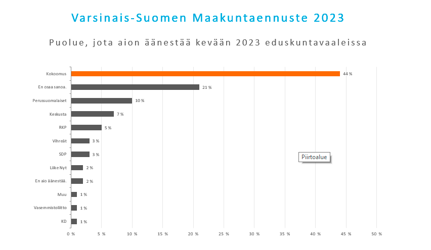 Vuoden 2023 Varsinais-Suomen Maakuntaennusteen lisäkyselyn tulokset kertovat varsinaissuomalaisten yrittäjien odotuksista seuraavaa hallitusta kohtaan. Lisäkysely paljastaa myös, että suurimman osuuden yrittäjien äänistä saa kokoomus.