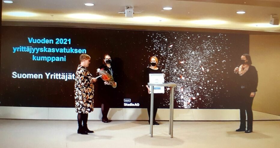 – Suomen Yrittäjät ry on aktiivisesti ja sitoutuneesti osallistunut Stadin AO:n yrittäjyyskasvatuksen toiminnan kehittämiseen ja toimintaan eri tapahtumissa ja tilaisuuksissa. Suomen Yrittäjät ry järjestää Stadin AO:n henkilöstölle yrittäjyyskasvatuksen koulutuksen kehittävässä yhteistyössä Stadi Tresaa yrittämään- tiimin kanssa, palkintoperusteluissa sanotaan.