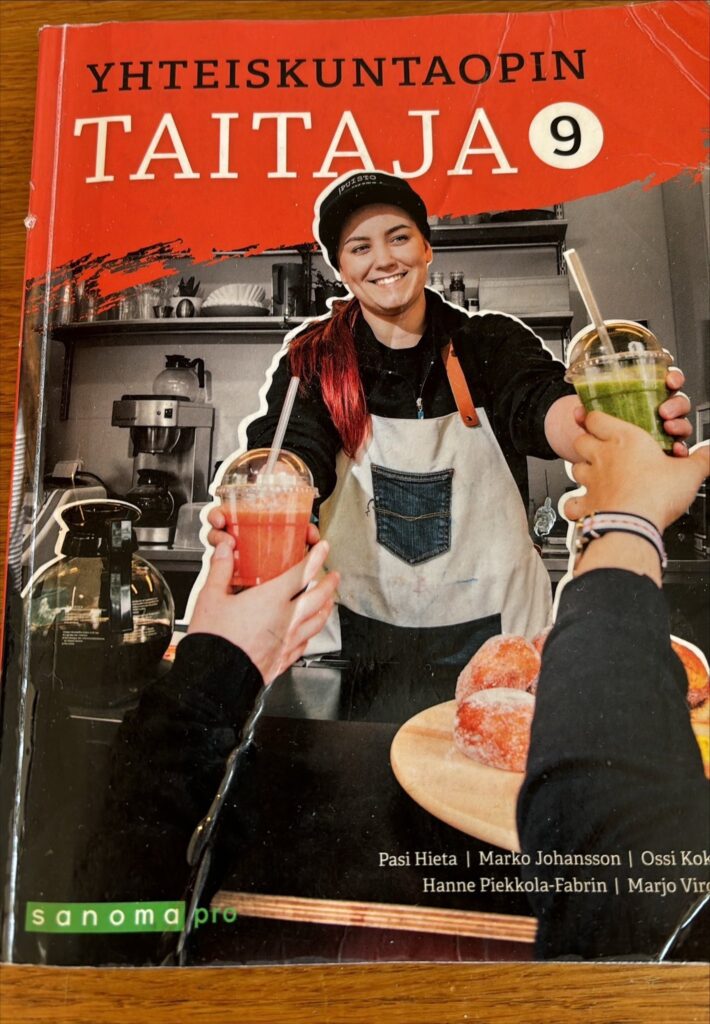 Suomen Yrittäjien työmarkkina-asioiden päällikkö Harri Hellstén hämmästyi lukemaansa kuulusteltuaan yhdeksättä luokkaa käyvältä lapseltaan yhteiskuntaopin koealueen aineistoa.