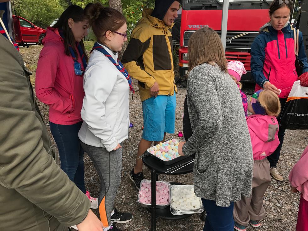 Vuosaaren Rastipartion lippukunta tarttui heti toimeen ja yrittäjien piste täyttyi hetkessä iloisista lapsista perheineen. Mukana olivat Anna Mell, Olli Heikkinen, Joosef Abokther ja Rosa Savén.