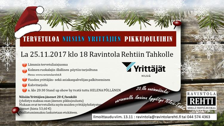 Nilsiän yrittäjien pikkujoulut Ravintola Rehtissä 25.11.2017 klo 18 alkaen!