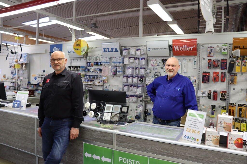 – Myymälätouhu on pysynyt aika lailla samanlaisena. Me myymme sähkötarvikkeita, elektroniikan ja automaation komponentteja sekä valaisimia ihan normaali kuluttajasta tuonne yritysmaailmaan, Jyrki kertoo.