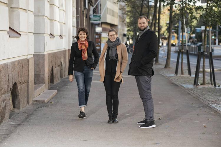 Kuvassa: Helsingin yritysluotsit Heidi Lihr, Suvi Tuiskunen ja Jukka-Pekka Tolvanen ovat yrittäjien uusi kontaktipinta kaupunkiin. (Kuva: Sakari Röyskö)