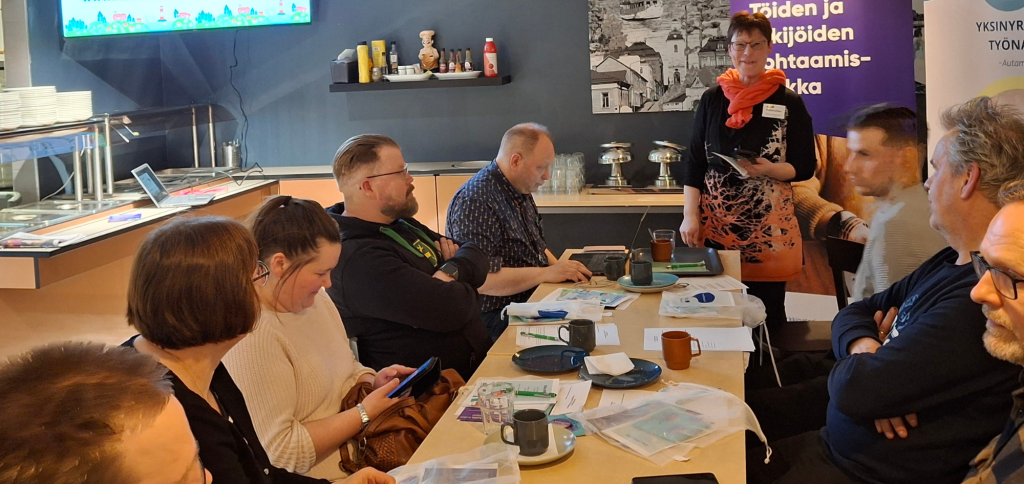 Työllisyyspalveluiden edustajat Jaana Kattainen ja Sanna Laitinen esittelivät TyöNavigaattorin palveluja, joilla tuetaan työn ja tekijän kohtaamista Kuopion työllisyyspalveluiden alueella. TyöNavigaattori tarjoaa maksuttomia rekrytointipalveluja ja järjestää rekrytointitapahtumia yrittäjien ja työnhakijoiden tueksi.