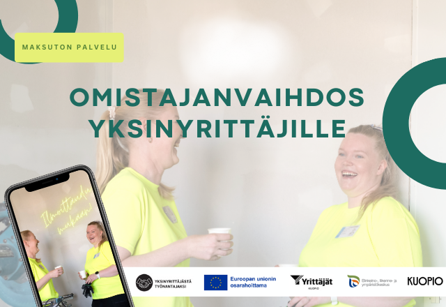Oletko jäämässä eläkkeelle tai muuten luopumassa yrityksestäsi? Ilmoittaudu mukaan maksuttomaan omistajanvaihdosneuvontaan. Palvelu on suunnattu kuopiolaisille yksinyrittäjille.