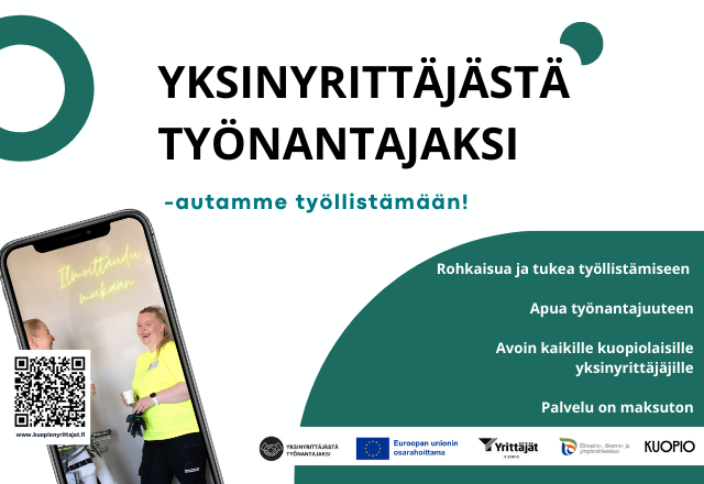 Kuopion Yrittäjien yritysasiantuntija Pekka Vartiainen esitteli Yksinyrittäjästä työnantajaksi -hanketta, jonka kautta jo 40 yritystä on lähtenyt mukaan ja 15 henkilöä on työllistynyt. Yksinyrittäjästä Työnantajaksi-hankkeen aikana yrityksen lopettamista harkinneilta esiin noussut tarve synnytti hankkeen rinnalle kokonaan uuden palvelun, joka keskittyy Yksinyrittäjien Omistajanvaihdoksiin. Palvelun tarkoituksena on tukea ja neuvoa yrityksen myynnistä kiinnostuneita yrittäjiä sekä auttaa säilyttämään paikalliset palvelut jatkajan löytymisen turvin. Molempien hankkeiden puitteissa järjestetään koulutuksia ja työnantajaklubeja sekä tarjotaan kattavaa tietoa yrityksen omistajanvaihdoksesta ja työnantajana toimimisesta.