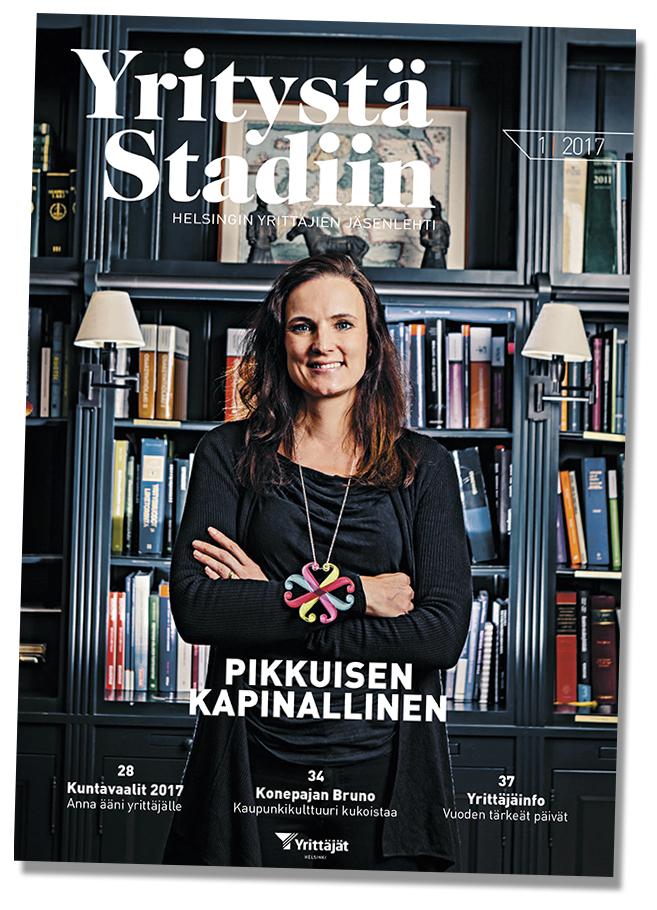 Vuoden 2017 ensimmäinen Yritystä Stadiin -jäsenlehtemme ilmestyi 6.3.2017. Lue kattava kuntavaalipaketti ja tutustu uudenlaisen kaupunkikulttuurin keskukseen Konepajan Brunoon. Esittelemme myös Vuoden 2016 helsinkiläisen yrityksen, jonka perustaja Marianne Saarikko Janson tiimeineen on hyvän työelämän asialla.